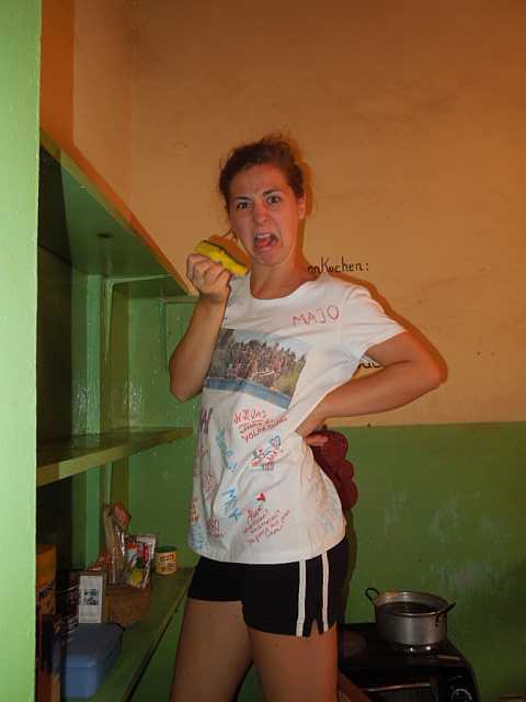 Ich verrate jetzt mal nicht, dass ich irgendwann an dem Bettlaken verzweifelt bin und sogar zu Hause angerufen habe um zu fragen wie man Wäsche mit der Hand wäscht. (Jaja, lacht ihr nur! Aber ihr könnt es ja selbst einmal ausprobieren. Nehmt euch ein weißes Bettlaken, einen Eimer und ein Stück Seife, geht in den Garten und versucht das Zeug zu waschen. Jetzt fehlt euch natürlich noch der ganze rote Staub und auch euer Eimer wird weitaus sauberer sein. Aber ihr könnt ja ein bisschen Erde ins Wasser pusten. XD