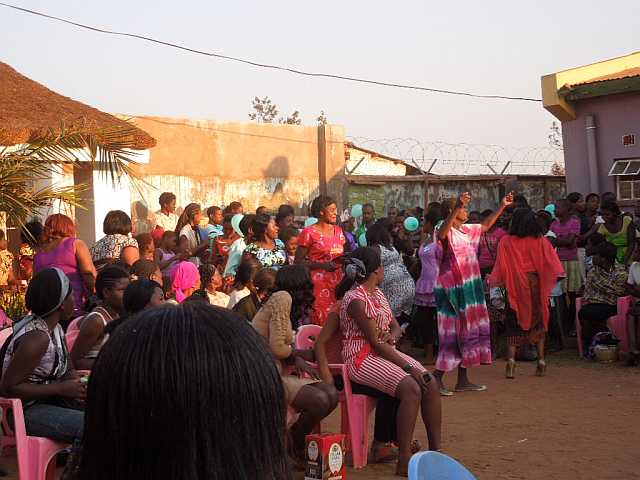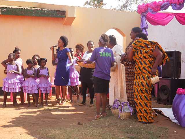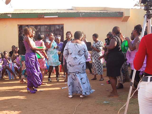 Ich bin mir bis jetzt nicht sicher, ob wir noch abgeholt worden wären, aber 12.00h war recht gut getimt, denn genau zu der Zeit stand eine Horde von Menschen allen Altersgruppen vor Freddies Haus und wartete darauf in den nächsten Minibus zu steigen, der sie zu dem bevorstehenden Ereignis bringen sollte. Glücklicherweise haben wir unsere Tomatenverkäuferin (ich weiß ihren Namen leider immer noch nicht) in dem Getümmel ausfindig machen können und sie hat uns einen „Platz“ in dem Minibus besorgt.